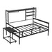 Twin Size Daybed With Movable Desk, Grid, Shelves And Clothes Hanger - Black