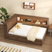 Full Size Daybed With Storage Shelves, LED, USB, And Trundle - Wood