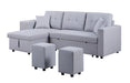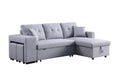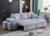 Dennis - Linen Fabric Reversible Sleeper Sectional With Storage Chaise And 2 Stools
