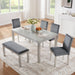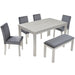 6 Pieces Wooden Dining Table Set, Wooden Dining Table With 4 Upholstered Chairs And Bench For 6 People - Silver Gray