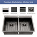 - Double Bowl: Enhance kitchen efficiency with a 50/50 split double basin.