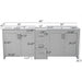 Double Sink Bathroom Vanity With Quartz Countertop, Adjustable Shelves, 3 Drawers - Gray
