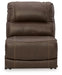 | Details | Includes left-arm facing power recliner, power armless recliner, console with storage, wedge, 2 armless chairs and right-arm facing power recliner, "Left-arm" and "right-arm" describe the position of the arm when you face the piece, One-touch power control with adjustable positions, Easy View™ adjustable headrest and zero-draw USB plug-in, Zero-draw technology only consumes power when the USB receptacle is in use, Zero-gravity mechanism allows optimum reclining comfort with infinite reclining positions at the touch of a button, Corner-blocked frame with metal reinforced seat; attached cushions; high-quality foam cushions wrapped in poly fiber, 100% top grain leather covers inside areas such as the back, seat and arm cushions; skillfully matched faux leather covers the remaining areas, Due to its natural origin, real leather can show individual characteristics such as healed scars, growth marks, grain variation and shade variation, Natural variations make each hide unique and do not detract from the wearing qualities of leather, Console with 2 cup holders and hidden storage, Extended ottoman for enhanced comfort, Zero wall design requires minimal space between wall and chair back, Power cord included; UL Listed | |