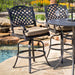 Elegant Cast Aluminum Counter Stool Set With Cushions, All Weather Design - Dark Brown