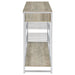 - Modern Farmhouse Design: Combines casual elegance with practical storage in a sleek grey washed oak and chrome finish