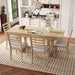 • Extendable Dining Set: Includes a rectangular dining table and f upholstered chairs with trapezoidal backrests, blending modern design with farmhouse charm - perfect for family meals or stylish entertaining.