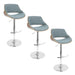 Fabrizzi - Mid-Century Modern Adjustable Barstool With Swivel With Rounded T Footrest (Set of 3) - Chrome / Walnut / Blue