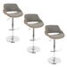 Fabrizzi - Mid-Century Modern Adjustable Barstool With Swivel With Rounded T Footrest (Set of 3) - Chrome / Walnut / Gray