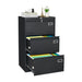 Filing Cabinet Lateral File Cabinet 3 Drawer, Blcak Locking Metal File Cabinets Three Drawer, Office Filing Cabinet With Lock Drawers For Home Office - Black