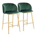 Fran - Pleated Waves Contemporary / Glam Fixed Height Counter Stool (Set of 2) - Gold / Green