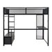Full Size Gaming Loft Bed With LED Desk, Open Wardrobe, 3 Linen Storage Drawers - Black