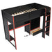 Twin Size Gaming Loft Bed With Built In Desk, Wardrobe, LED Lighting And Drawer - Black