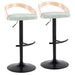 Grotto - Contemporary Adjustable Height Barstool With Swivel With Rounded T Footrest (Set of 2) - Black / Natural / Light Green