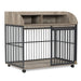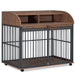 Heavy Duty Large Dog Crate Furniture For Large Medium Dog With Lockable Wheels, Wooden Dog Crate Dog Kennel, End Table Crate With Double Layer Storage - Brown