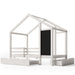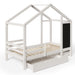 Twin House Bed With Blackboard And Drawers, 2 Assembly Options - White