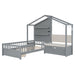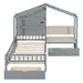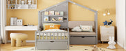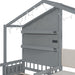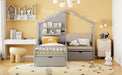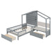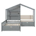 Twin Size House Bed With Upholstered Sofa, Wireless Charging Station, Shelves And 2 Drawers - Gray