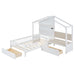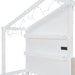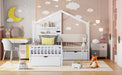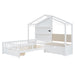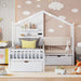 Twin Size House Bed With Upholstered Sofa, Wireless Charging Station, Shelves And 2 Drawers - White