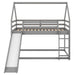 House Shape Twin Over Twin Bunk Bed With Slide And Ladder - Gray