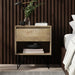 - Features one (1) drawer and a large convenient open compartment, metal drawer glides and notched drawer pulls