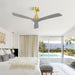 Indoor Ceiling Fan Without Light 3 Solid Wood Blades Remote Control Reversible Dc Motor - Gold