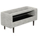 The Isla Storage ottoman blends style with functionality to bring a fresh breeze to your home. With its low back and solid wood legs, this ottoman offers both comfort and durability. The soft chenille fabric, in a light cream color with flecks of gray, creates a serene and inviting look. Hidden bench storage provides a perfect place for blankets, books, or other essentials to keep your space organized and clutter-free. Equally suited to placing at the end of a bed as by an entryway, the Isla storage ottoman combines timeless design with everyday elegance.