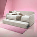 - Product Design: The Jagger Fog Fabric Daybed comes with a roll-out trundle and a slat system with 28 slats included, providing robust support for twin size mattresses. It features a fully padded design for enhanced comfort and style.