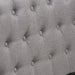 - Design and Material: This daybed features a Chesterfield shape with a fully padded design, upholstered in fabric. It includes button tufted detailing and nailhead trim in a nickel finish, enhancing its elegant appearance. The daybed is supported by wooden round legs with a black finish.