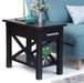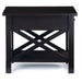 - Features one large drawer with metal drawer glides and an open bottom shelf providing ample storage space.