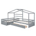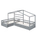 L-Shape Twin Platform Bed With 3 Storage Drawers - Gray