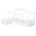L-Shape Twin Platform Bed With 3 Storage Drawers - White