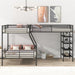 L-Shaped Twin Over Full Bunk Bed And Twin Loft Bed With 4 Built In Shelves - Black