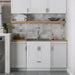 • Cabinet is constructed with melamine, and doors and drawer front are wrapped with PVC, materials that are highly durable, low maintenance, and water resistant