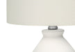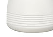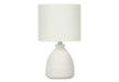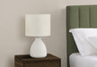 - Elegant Design: Striking cream ceramic table lamp with a modern beehive-shaped base and textured groove lines. Ivory fabric drum shade provides a stylish touch.