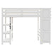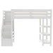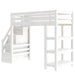 Full Size Loft Bed With 4 Layer Shelves, Storage Staircase, Small Wardrobe, LED Light - White