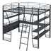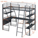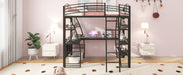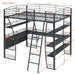 Full Size Loft Bed With 4 Layers Of Shelves And L-Shaped Desk, Stylish Frame With A Set Of Sockets, USB Ports And Wireless Charging - Black