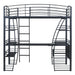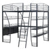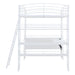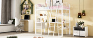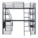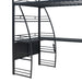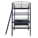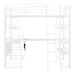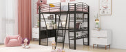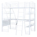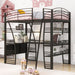 Crafted from metal with a clean painted finish, this metal loft bed strikes a clean-lined silhouette with curved slatted guardrails. This bold and imaginative design easily captures attention and complements your room decor. The four-layer open shelves offer ample space to display whatever you want, including lamps, books, and toys. For your convenience, a set of sockets, USB ports, and wireless charging is equipped on the desk, saving you the hassle of charging your phone and tablet while you work or read. Equipped with a large L-shaped desk, this bed provides a comfortable place to work, read, and enjoy yourself. I am sure that this imaginative loft bed can create your little wonderful world.
