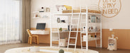 Twin Size Loft Bed With 4 Layers Of Shelves And L-Shaped Desk, Stylish Frame With A Set Of Sockets, USB Ports And And Wireless Charging - White