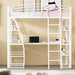 Full Size Loft Bed With 4 Layers Of Shelves And L-Shaped Desk, Stylish Frame With A Set Of Sockets, USB Ports And And Wireless Charging - White