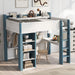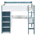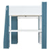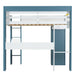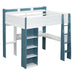 Full Size Loft Bed With Built In Storage Shelves, Clothes Rail, And Desk - White / Blue