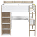 Full Size Loft Bed With Built In Storage Shelves, Clothes Rail, And Desk - White / Natural