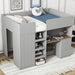 Full Size Loft Bed With Built In Wardrobe, Desk, Shelves, And Drawers - Gray
