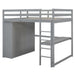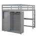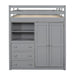 Full Size Loft Bed & Built In Wardrobe, Desk, Shelves, And Drawers - Gray