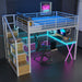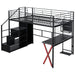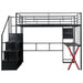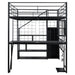 Full Size Loft Bed With Built In Work Station, Wardrobe, Storage Staircase And LED - Black