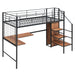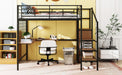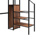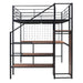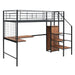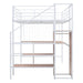 This metal loft bed with desk is made of sturdy metal and features a clean-cut silhouette that complements any room decor. The lateral three-layer ladder of the loft bed doubles as shelves to organize your home items. The wardrobe beneath the ladder is an elegant design element that provides space to store everyday clothes, helping you save plenty of space.Equipped with an L-shaped desk underneath, this bed offers a comfortable place to work, read, and relax. This loft bed is both a beautiful and practical addition to your bedroom.