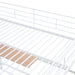 Modern Style: Crafted of metal in a clean painted finish, this bed features a clean-lined silhouette with a horizontal slatted headboard and footboard, along with a matching guardrail. The raised base creates a cozy loft space for storage or play.