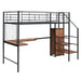 Full Size Loft Bed With Desk And Grid, Stylish Frame With Lateral Storage Ladder And Wardrobe - Black
