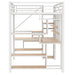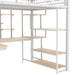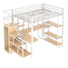 Full Size Metal Loft Bed With Storage Staircase And Small Wardrobe, Built - In Desk And Storage Shelves - White
