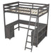 Full Size Loft Bed & U-Shaped Desk, Drawers, And Storage Shelves - Antique Brown