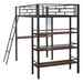 Loft Metal Bed With 3 Layers Of Shelves And Desk, Stylish Metal Frame Bed With Whiteboard