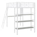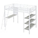 Twin Size Loft Bed With 3 Layers Of Shelves And Desk, Stylish Frame Bed - White